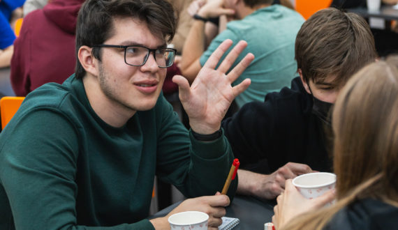 В продолжении вечера гости ИЦАЭ показали свои таланты знатоков в интеллектуальной игре «Квантовые совы» — спортивного формата «Что? Где? Когда?». Темы вопросов охватили широкий круг знаний: физика, история, литература и популярная культура.