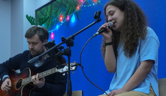 Вечер завершился научным квартирником. Для гостей ИЦАЭ выступили участник музыкальной группы «Теория струн» Андрей Байтингер и популяризатор науки, историк и вокалистка группы «Пикник на обочине» Алёна Полосина. Они рассказали истории о связи музыки и науки и исполнили вместе с залом любимые всеми песни.