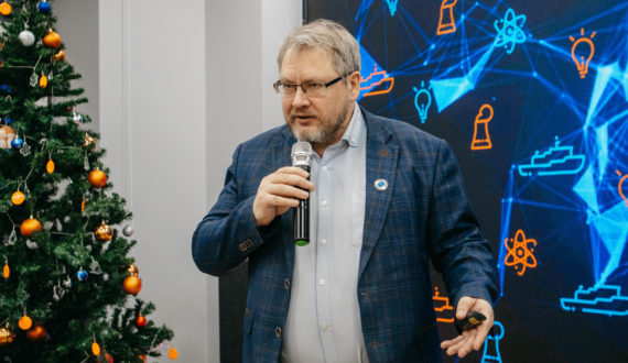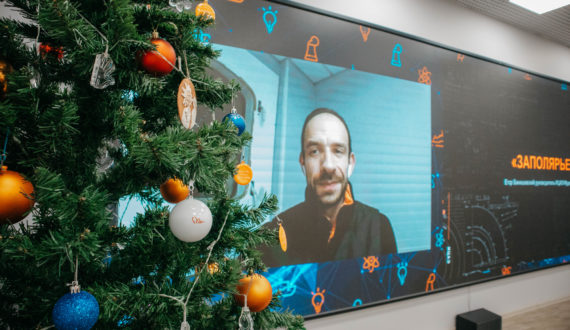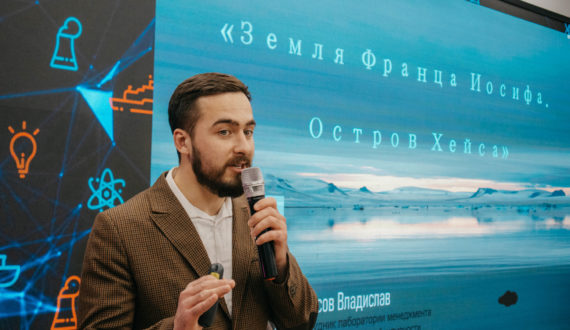 Первым выступил руководитель ИЦАЭ Мурманска Егор Банишевский с рассказом о полярном дне и полярной ночи, жизни в Арктической зоне и своём участии в экспедиции на Северный полюс на атомном ледоколе.