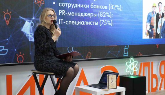 После опытов началась лекция о том, как не «сгореть» на работе. О симптомах профессионального выгорания и способах борьбы с таким состоянием рассказала Елена Петрова – начальник отдела профессионального обучения, профессиональной ориентации и повышения мобильности трудовых ресурсов Кадрового центра Ульяновской области, член областной Ассоциации психологов.