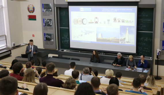 В рамках презентации профильного факультета в БГУ состоялась встреча с представителем БелАЭС, во время которой абитуриенты узнали о преимуществах, которые дает «атомное» образование и перспективах карьерного роста в этой сфере.