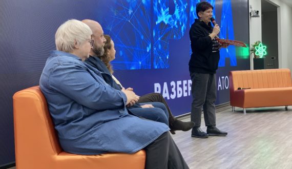 Также она предложила публике порассуждать о том, что такое тёплый атом в путешествиях. За лучшие ответы гости получили в подарок авторский путеводитель по Челябинской области.
