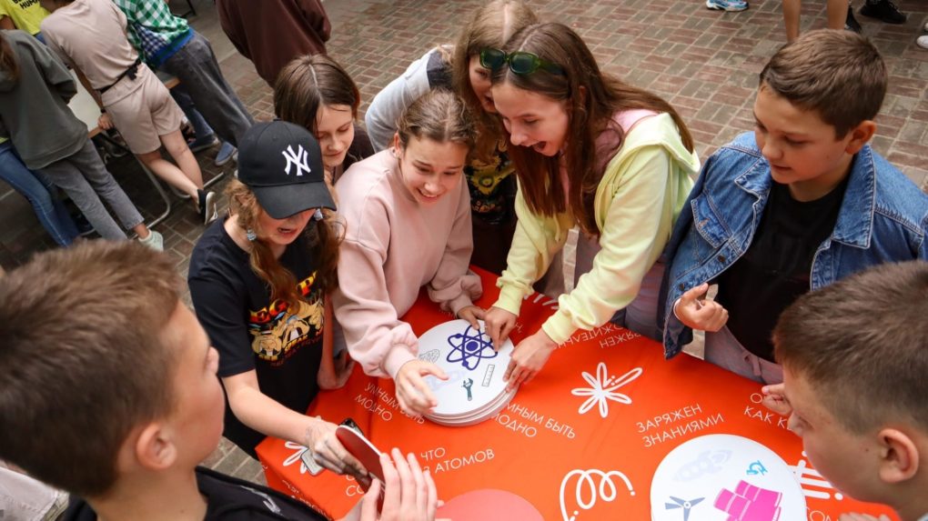 Юные гости с увлечением играли в «Атомный доббль», проявляя реакцию, находя совпадения в предметах на карточках. В ходе игры они узнали о том, что всё в этом мире состоит из атомов, что солнце, вода, ветер и атом являются источниками энергии и что в северных морях России ходят огромные и мощные атомные ледоколы.