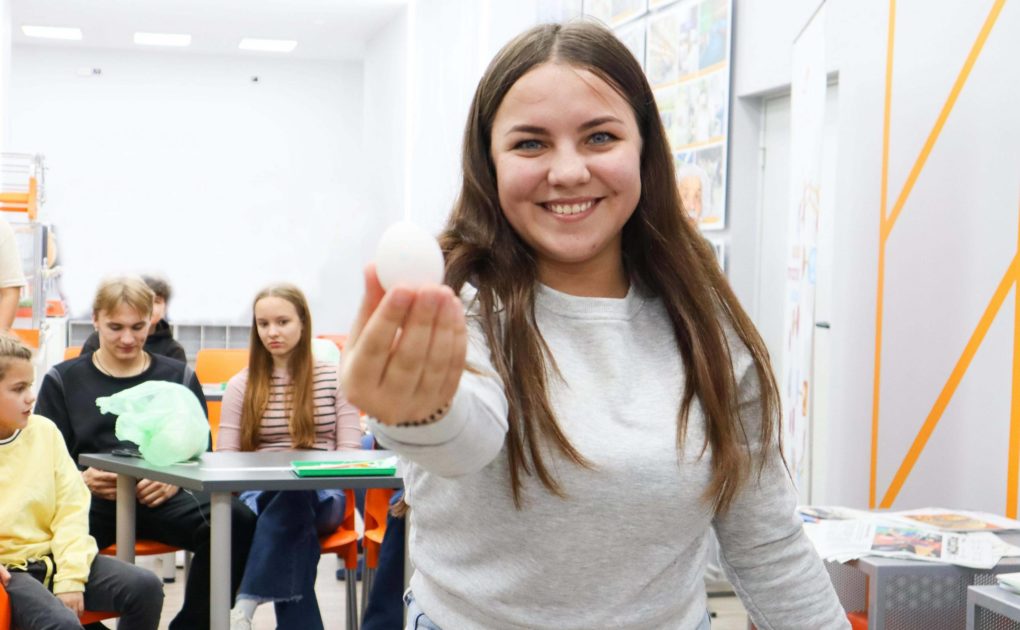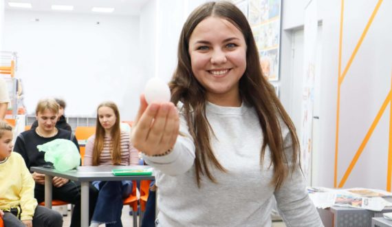 Начался вечер с мастер-класса «Скафандр для цыплёнка». Участники вечера попробовали себя в роли инженеров-конструкторов летательных аппаратов, создав прототипы космических кораблей из подручных средств, а также испытали получившиеся опытные образцы. Испытания прошли успешно – каждому участнику удалось создать прочный корпус, который выдержал повышенные нагрузки и сохранил целостность при приземлении.