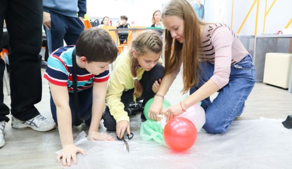Начался вечер с мастер-класса «Скафандр для цыплёнка». Участники вечера попробовали себя в роли инженеров-конструкторов летательных аппаратов, создав прототипы космических кораблей из подручных средств, а также испытали получившиеся опытные образцы. Испытания прошли успешно – каждому участнику удалось создать прочный корпус, который выдержал повышенные нагрузки и сохранил целостность при приземлении.