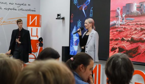 Продолжился вечер лекцией «Покоряя космос». Об истории астрофизики и космологии, запуске первого в мире искусственного спутника, получившего название «Спутник-1», и естественных спутниках планет Солнечной системы, а также об исследовательских миссиях на Марс и другие космические объекты рассказала Инна Шарнина, учитель физики и астрономии, магистр по направлению «Приоритетные направления науки в физическом образовании – космология».