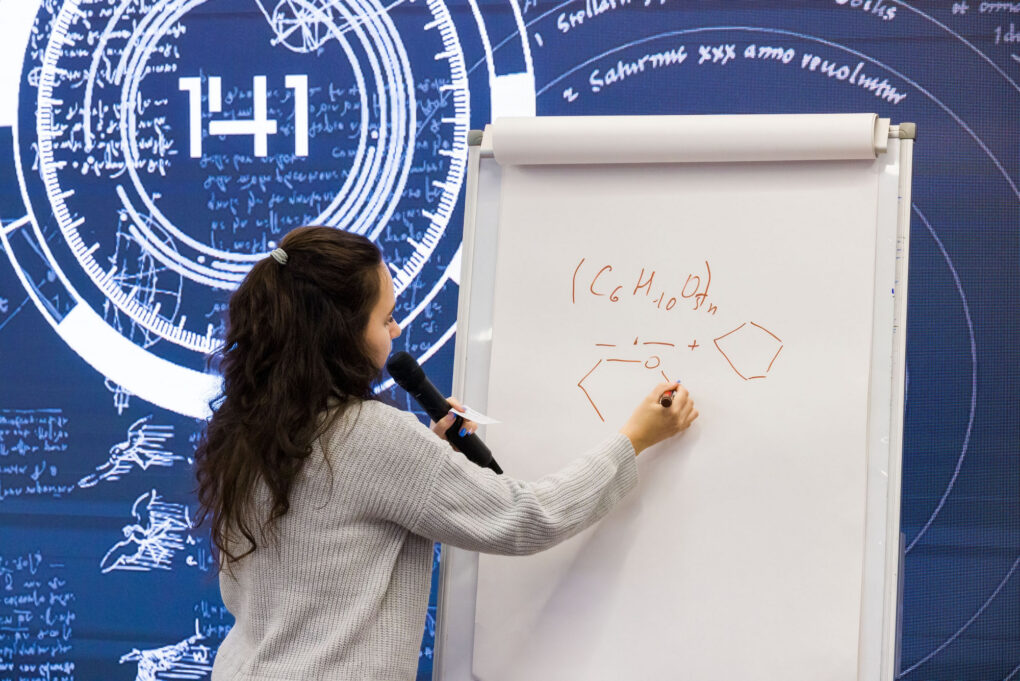 Многие вопросы были направлены в будущее. Например, есть ли предел у углеродных структур, или природа всё же ставит рамки? Лилия Коваленко объяснила это наглядно: «Углерод находится в четвёртой группе таблицы Менделеева, а значит, у него ровно четыре связи — как четыре руки, которыми он может цепляться за другие атомы. Благодаря этому он способен выстраивать бесконечные цепочки, которые лежат в основе всех белков, жиров и углеводов». Но рисовать молекулу можно до бесконечности, а вот с точки зрения энергии не все формы устойчивы: длинные цепи начинают заворачиваться, образуя циклы, и упираются в геометрические затруднения. Так что природа хоть и щедра, но свои рамки всё же расставляет — молекулы сами знают, когда пора остановиться.