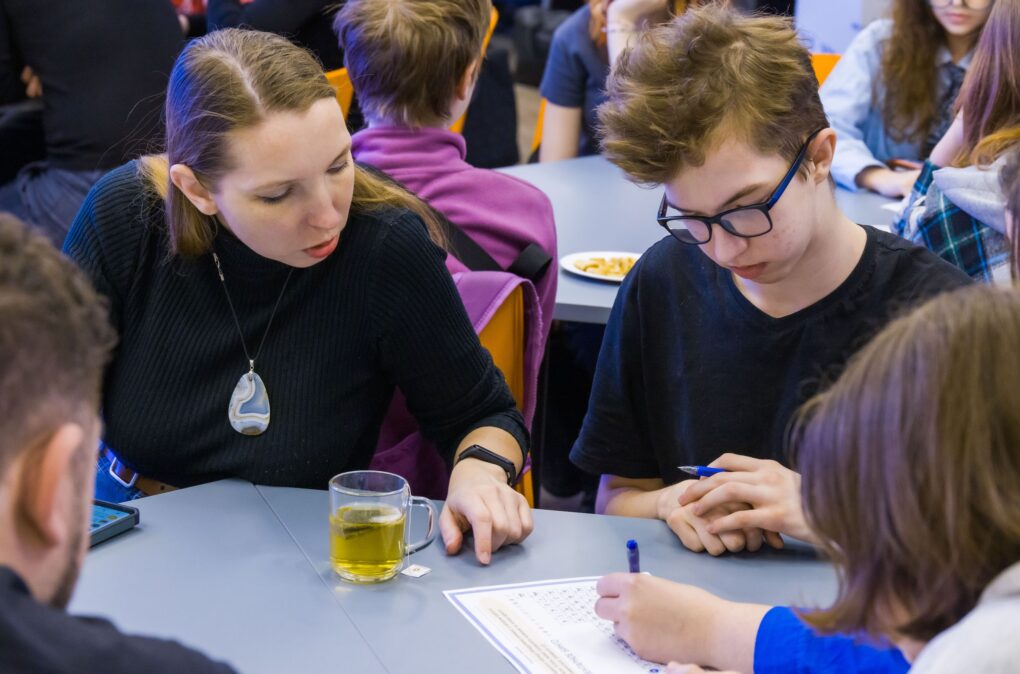 Продолжила вечер командная интеллектуальная игра «Химуза». В первом раунде участники искали названия химических элементов, зашифрованные в текстах популярных песен. Во втором — сопоставляли вещества и явления из композиций с видами дисперсных систем: например, разбирались, почему помада — это гель, а туман — аэрозоль. Так помада является гелем, поскольку представляет собой дисперсную систему, где твёрдая фаза (воски и пигменты) образует структурированную пространственную сетку, в которой удерживается жидкая фаза (масла). На этапе «Молекулярная сборка» гости собрали объёмные модели молекул, а в финальном раунде из символов элементов таблицы Менделеева составили осмысленные слова.