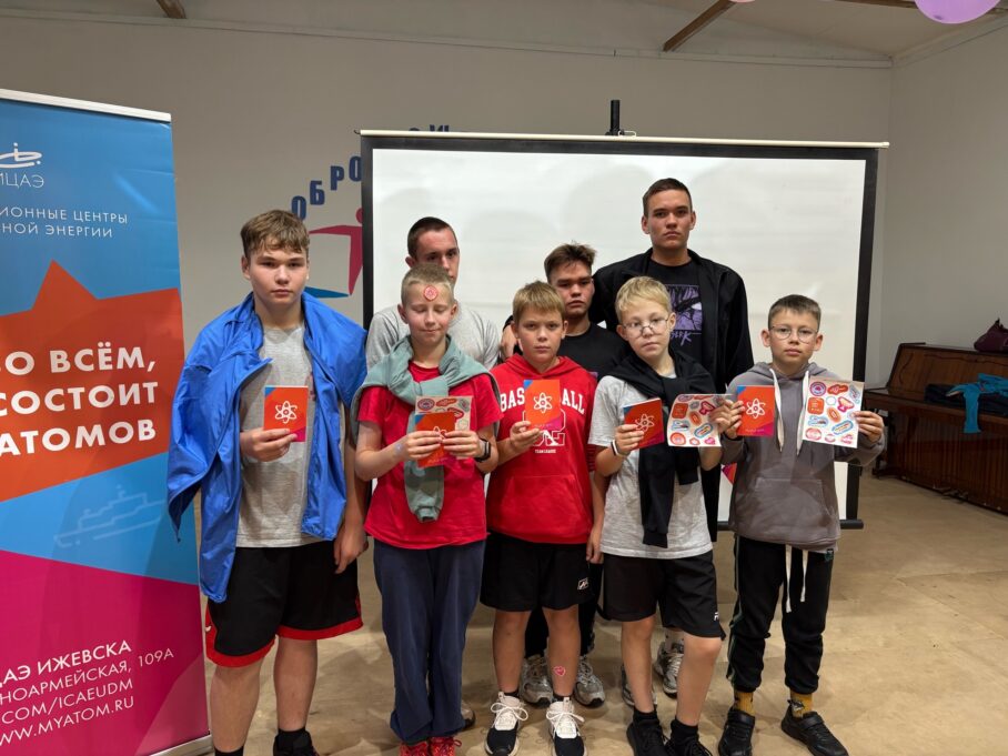 Приобщиться к науке через игру и узнать больше об атомной отрасли смогли участники смены детского лагеря «Звёздочка» в Глазове на тематическом мероприятии, посвящённом 80-летию атомной отрасли. Мероприятие организовал 11 августа Информационный центр по атомной энергии (ИЦАЭ) Ижевска совместно с АО ЧМЗ.