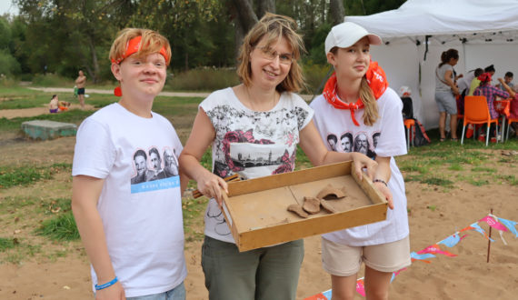 Уже на берегу Ижевского пруда под руководством Александра гости вечера попробовали себя в роли археологов. При помощи лопаток и кисточек они извлекли артефакты.