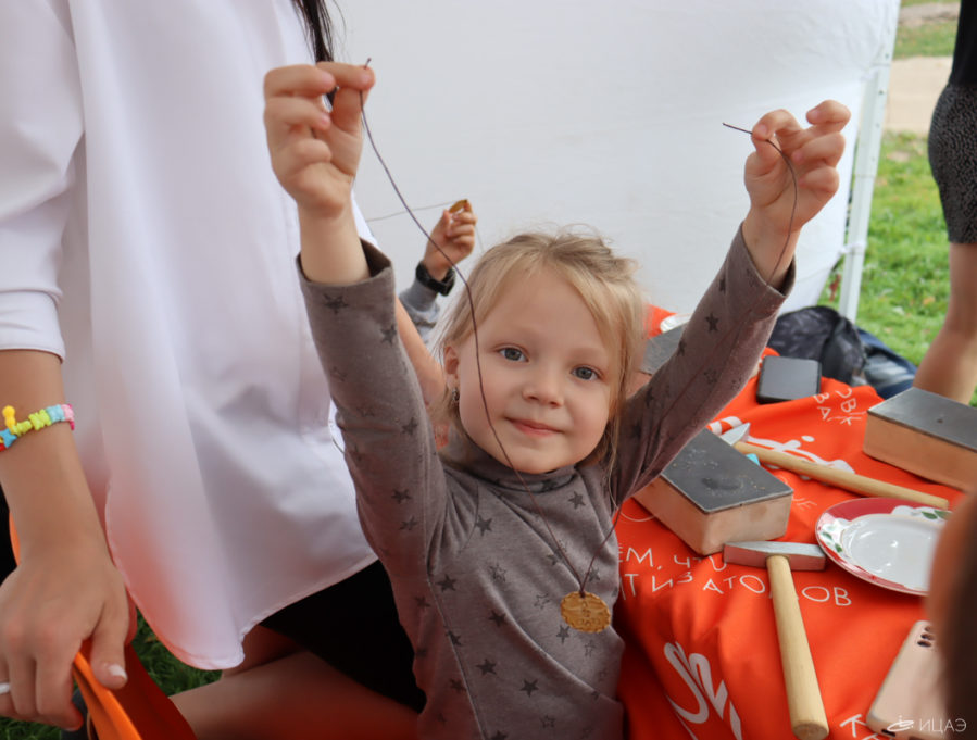 На мастер-классе по созданию кулонов из бересты от Центра декоративно-прикладного искусства Удмуртской Республики участникам рассказали о том, как использовалась береста в быту удмуртов, как её добывали, обрабатывали и использовали.