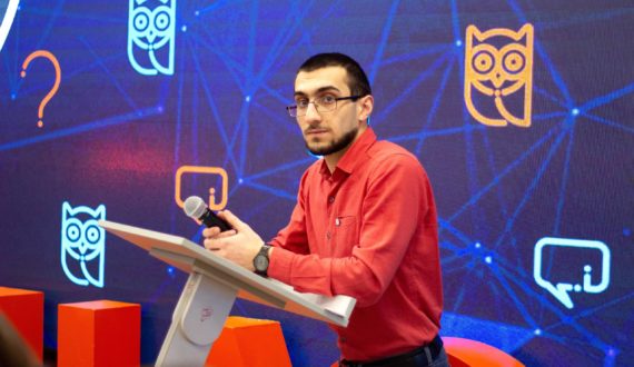 В завершение вечера состоялась очередная встреча участников школьного интеллектуального клуба. На этот раз «Интеллектуальный марафон» также был посвящён информационным технологиям: командам предстояло отвечать на неординарные вопросы об IT-сфере в формате спортивного «Что? Где? Когда?». По традиции ведущим стал победитель различных интеллектуальных игр ИЦАЭ Вазген Асланян.