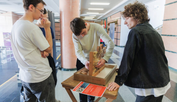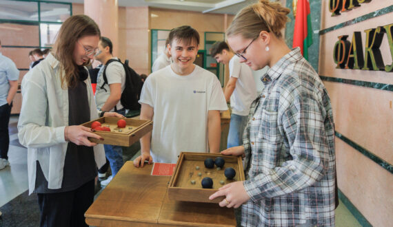 Ещё до начала встречи студентам и школьникам предложили поучаствовать в познавательно-образовательных активностях ИЦАЭ г. Минска. В частности, можно было собрать части корпуса реактора, ответить на вопросы по энергетике, выстроить парад планет и обойти «высокое напряжение».