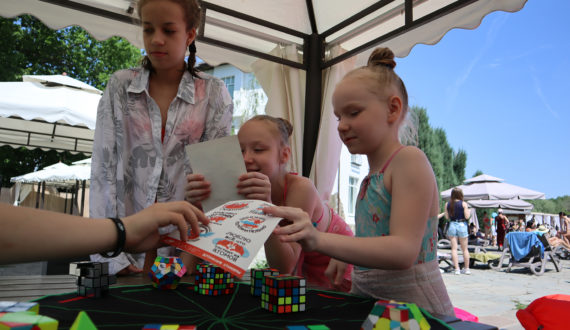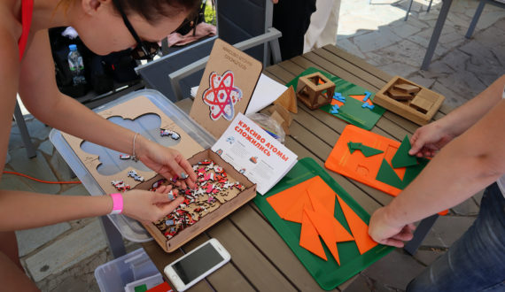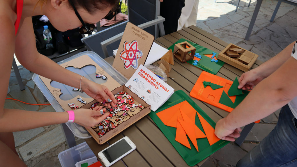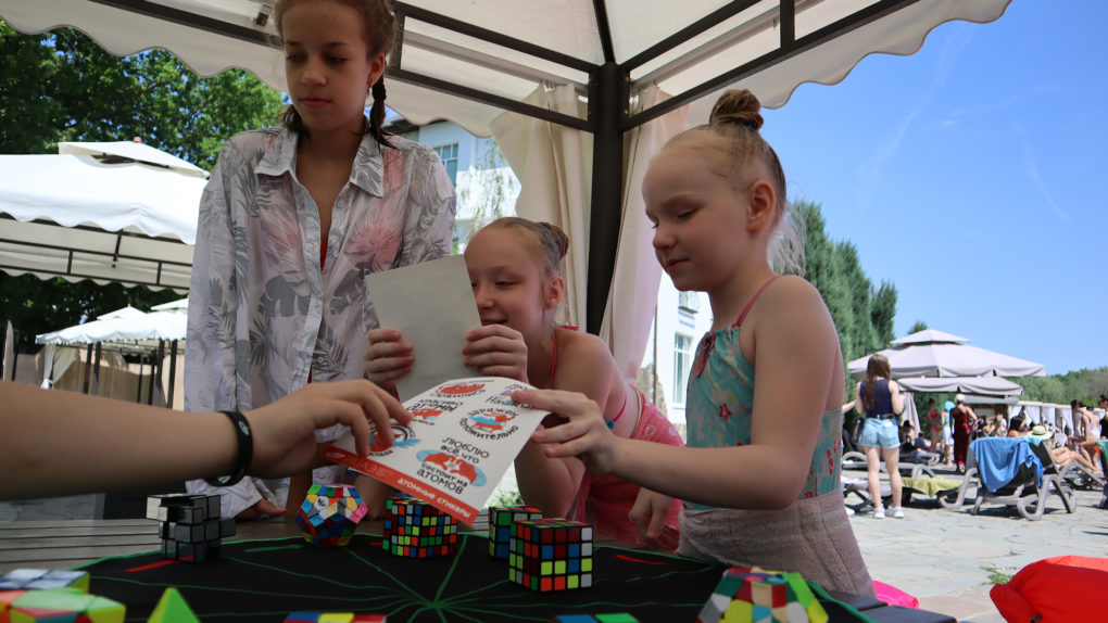 Также на “Научной лужайке” были представлены головоломки, научные викторины, “атомные ребусы”, настольные игры, мастер-класс по сборке кубика Рубика и гигантские “атомные” шашки, в которые сражались дети и родители.