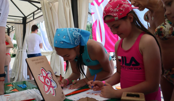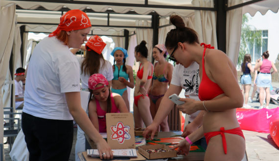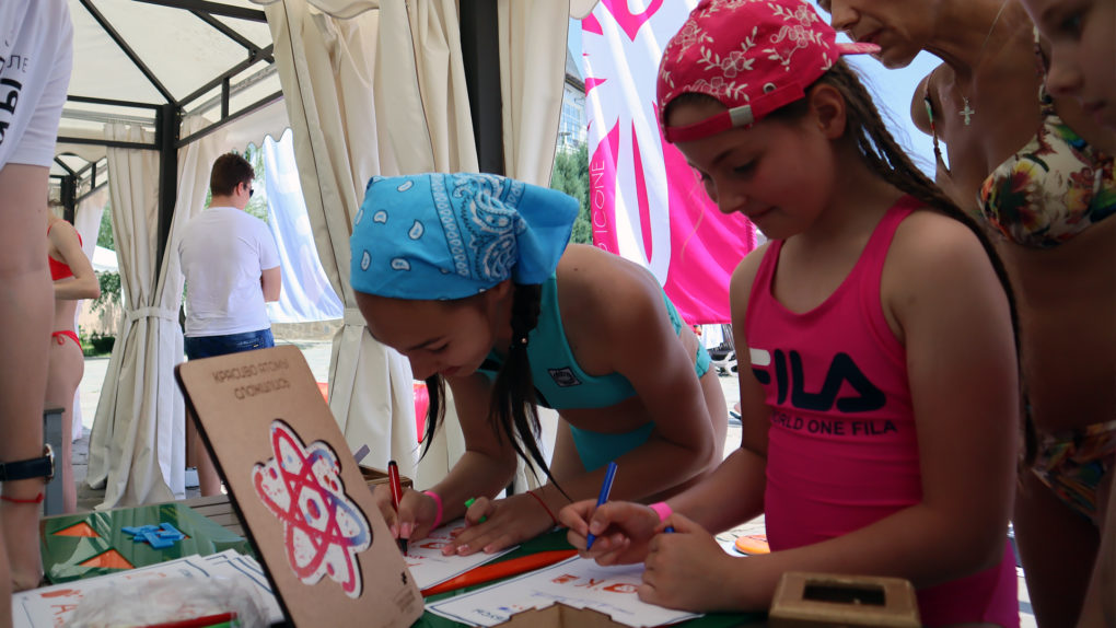 В “химической лаборатории”, в которую превратилась одна из площадок, лаборанты познакомились с понятиями кислоты, щёлочи, разобрали, как влияют на настроение различные ароматы, и сделали “бомбочки” для ванны.
