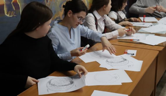 В завершение просветительского мероприятия участники сделали подвижную карту звёздного неба, по которой можно определить, какие астеризмы (легко различимая группа звёзд) будут видны в тот или иной временной промежуток. Для этого участники наложили на карту звёздного неба круг, на котором был обозначен небесный меридиан. Далее, вращая карту и круг, участники могли увидеть во внутреннем вырезе часового круга звёздное небо в любую выбранную дату.