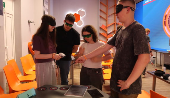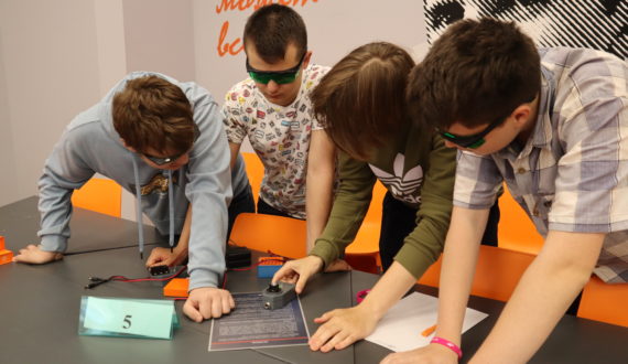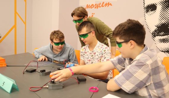 Самые старшие ребята знакомятся с возможностями лазерных технологий на новом практикуме ИЦАЭ «Лазеры». Узнав об истории открытия и принципах работы лазеров, гости ИЦАЭ проходят квест, в котором им нужно на практике испробовать данные технологии. Они с помощью лазерных приборов измеряют объём помещения, считывают штрих-коды и воспроизводят звук аудиодорожки.