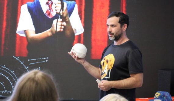 Далее гостей ИЦАЭ ждала лекция «Эволюция «Учёных против мифов»: как проблемы превратить в фишки?» от Георгия Соколова, кандидата физико-математических наук, продюсера форума «Учёные против мифов». Лекция состоялась в рамках федерального проекта сети Информационных центров по атомной энергии (ИЦАЭ) «Энергия науки».