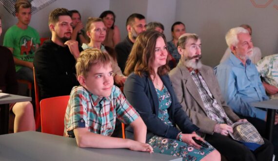 Сразу после лекции начался предпремьерный показ фильма «Пирамиды XX века». Гости новосибирского ИЦАЭ смогли самыми первыми увидеть фильм об истории малоизвестного эксперимента по строительству пирамид в прошлом веке.