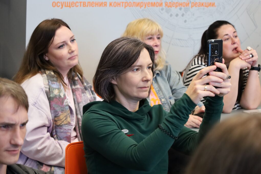 Далее гостей ИЦАЭ ждала лекция «Эволюция «Учёных против мифов»: как проблемы превратить в фишки?» от Георгия Соколова, кандидата физико-математических наук, продюсера форума «Учёные против мифов». Лекция состоялась в рамках федерального проекта сети Информационных центров по атомной энергии (ИЦАЭ) «Энергия науки».