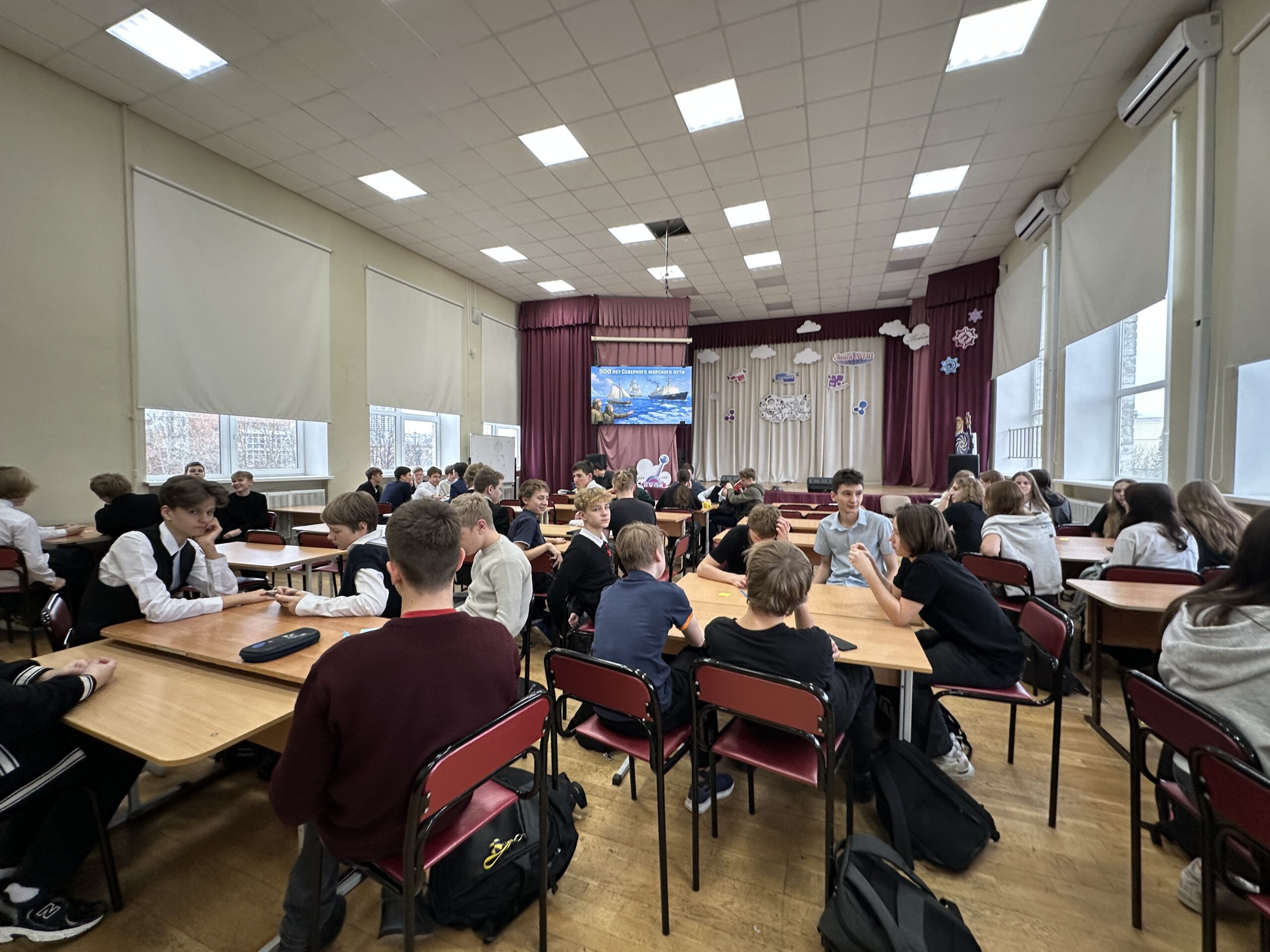 Ученики старших классов сыграли в интеллектуальную командную игру «Адреналин», посвященную истории освоения Северного морского пути, а младшеклассники посмотрели первую серию нового мультипликационного сериала «Герои Арктики» про мамонтенка, который вновь ищет маму.
