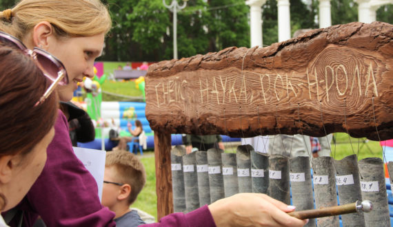 Площадка «We will rock you» позволила участникам реализовать свой творческий потенциал: посетители сами придумывали композицию на уникальном музыкальном инструменте – литофоне. Он создан из геологических образцов – гнейсов, изъятых с полукилометровой глубины Нижнеканского скального массива, где сегодня идёт строительство подземной исследовательской лаборатории и ведутся работы по изучению возможности финальной изоляции радиоактивных отходов.