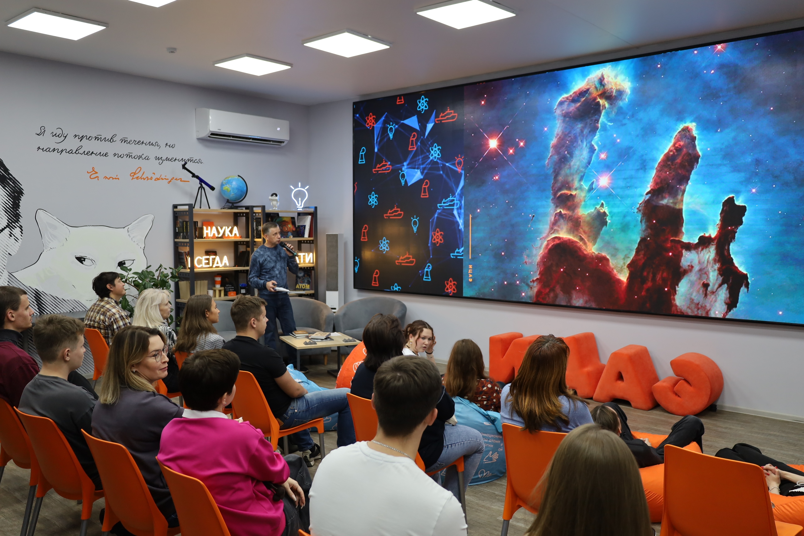 «Безумно интересный ведущий, который с самого начала погрузил нас в атмосферу космоса. Из фильма узнал много нового, спасибо за полноценный кинопросмотр с ощущением нахождения за пределами земли. А у спикера просто потрясающие снимки космических объектов, выглядят очень красиво! Мы впервые в ИЦАЭ, придём ещё», — отметил Илья Меньшиков, гость центра.