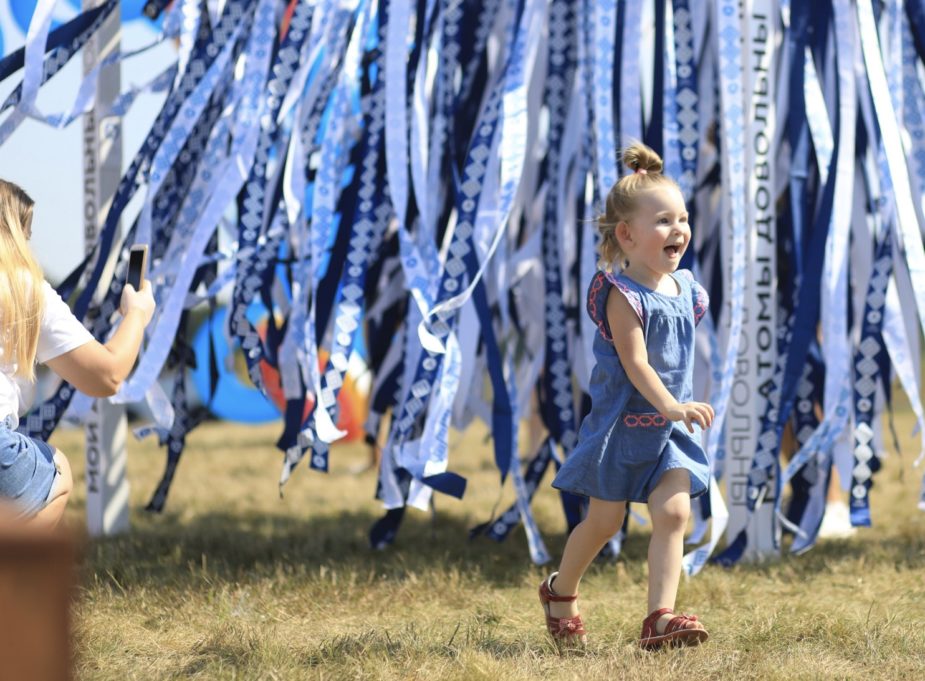 Территория рядом с пляжем реки Лоша на один день превратилась в большой научный город Атомполис, в каждом районе которого работали интерактивные локации. Жители и гости города посещали «Кампус да Винчи» и «Центр креатива», гуляли на «Площади конструктива» и в «Саду Ньютона», фотографировались в «Селфи-парке» и ловили прохладу в «Порту ветра». Разобраться в карте и маршрутах импровизированного города гостям помогали местные жители — волонтёры Республиканского штаба студенческих отрядов, работающих на площадке сооружения Белорусской АЭС.