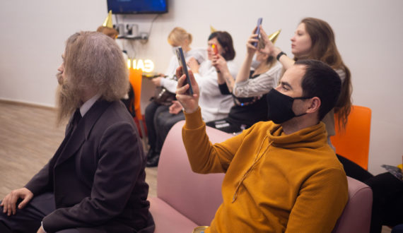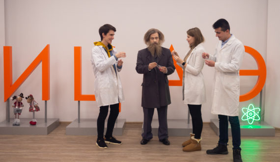 Создавал атмосферу праздника, встречал гостей и принимал поздравления и подарки в каждом городе сам Дмитрий Менделеев. Создать образ учёного помогли театральные гримёры.