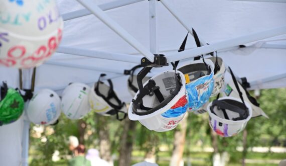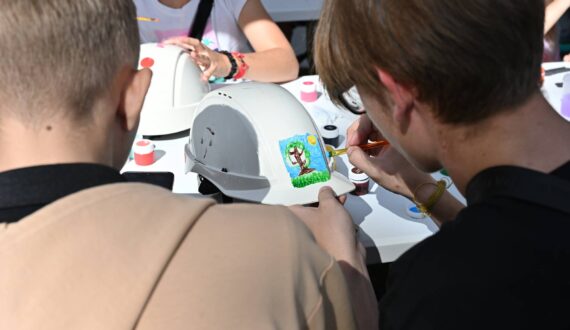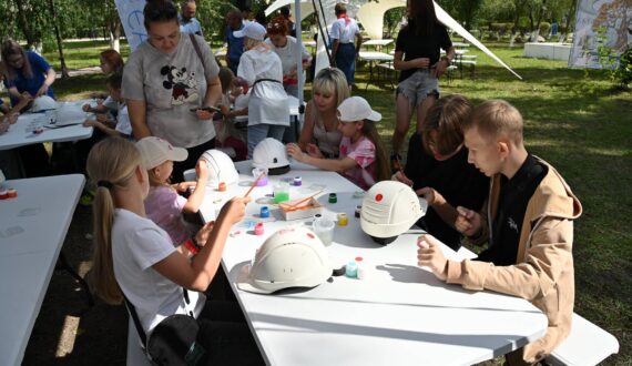 В течение дня юные жители «урановой столицы» участвовали в мастер-классе по раскрашиванию шахтёрских касок: участники «кастомизировали» средства индивидуальной защиты, которые затем будут переданы шахтерам на производственные площадки ПАО «ППГХО им. Е.П. Славского» (предприятие Горнорудного дивизиона «Росатома»).