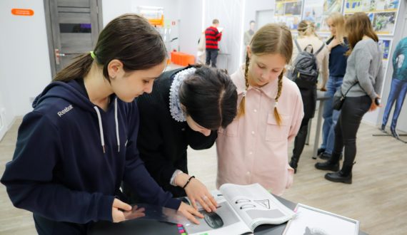 В продолжении вечера гости посетили выставку «Иллюзии и реальность», где каждый смог ощутить оптические и звуковые иллюзии. Самой популярной оказалась «синематографика» — интерактивная книжка, картинки в которой приводятся в движение с помощью специальной пленки.