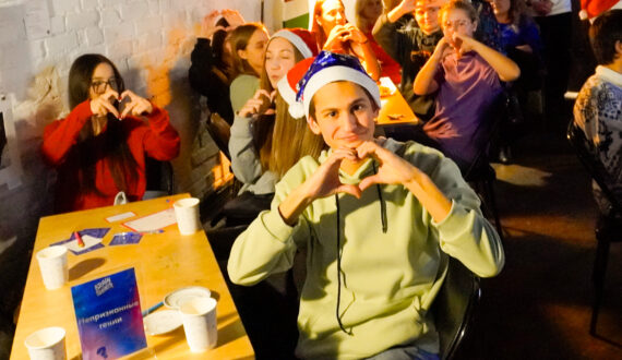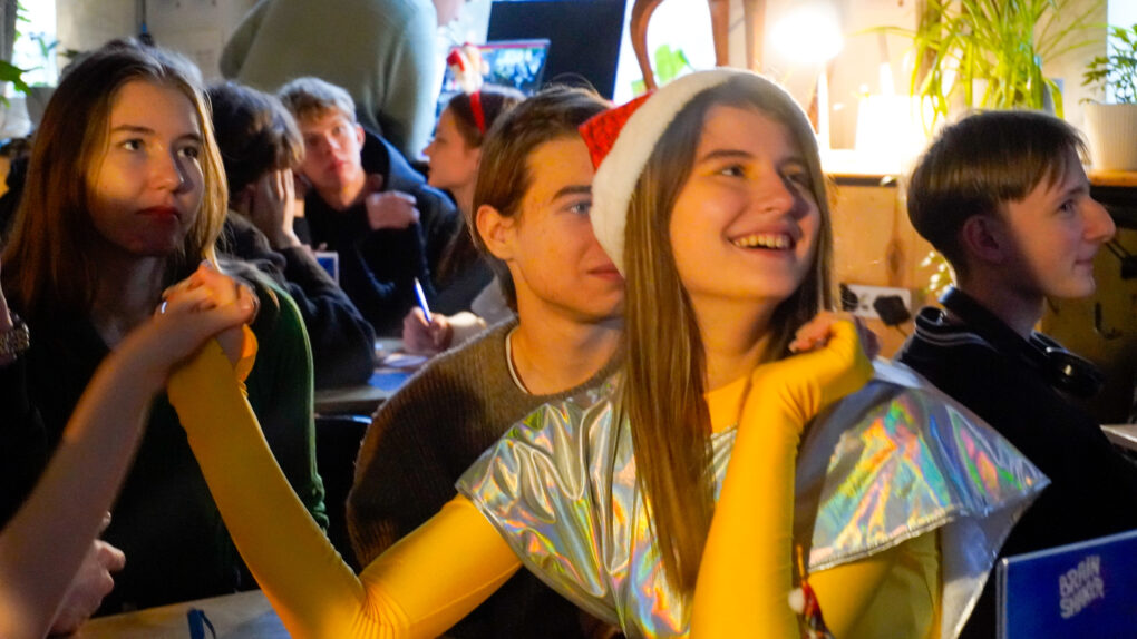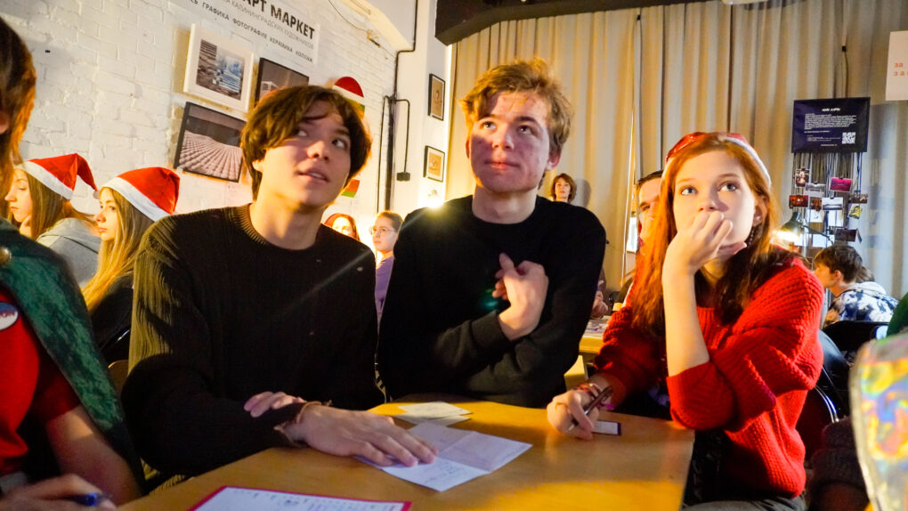 Декабрьская встреча «BrainShaker. Юниоры» прошла вне рейтинга: организаторы предложили командам собраться последний раз в 2024 году на дружескую игру. Поэтому многие участники пришли в новогодних костюмах, а между турами они могли отправить открытку игрокам из другого города.