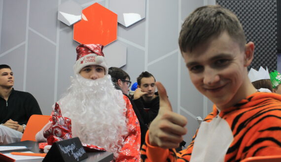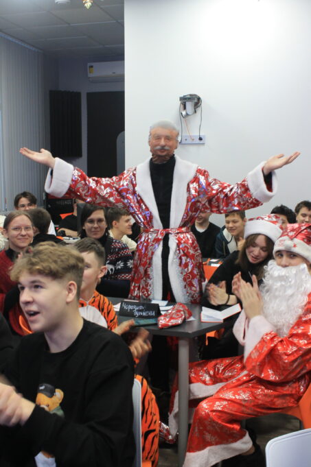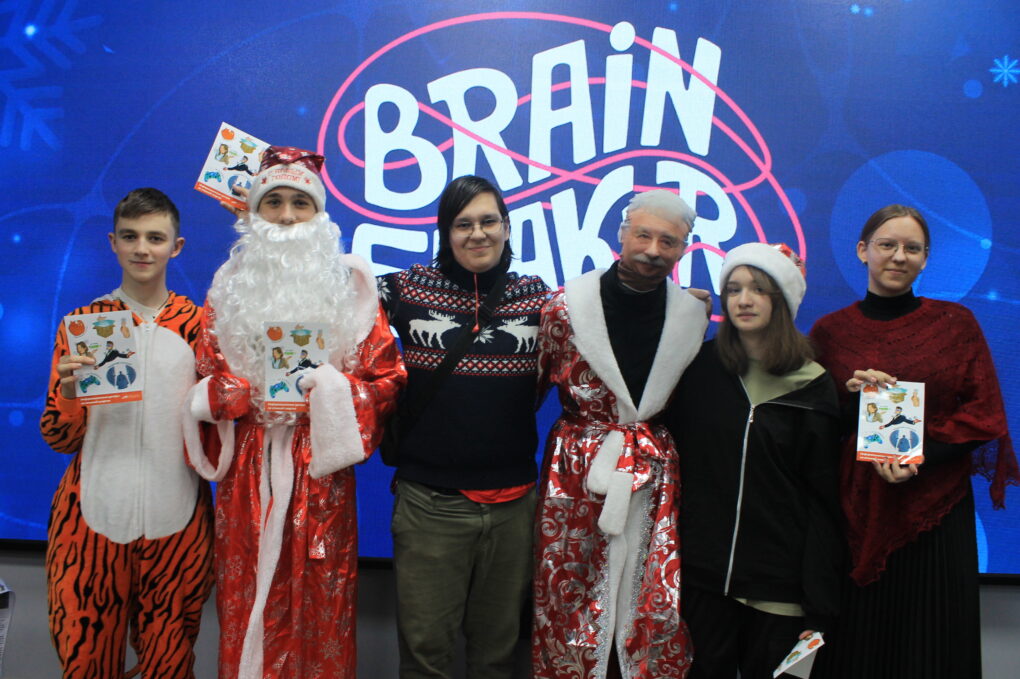 Декабрьская встреча «BrainShaker. Юниоры» прошла вне рейтинга: организаторы предложили командам собраться последний раз в 2024 году на дружескую игру. Поэтому многие участники пришли в новогодних костюмах, а между турами они могли отправить открытку игрокам из другого города.