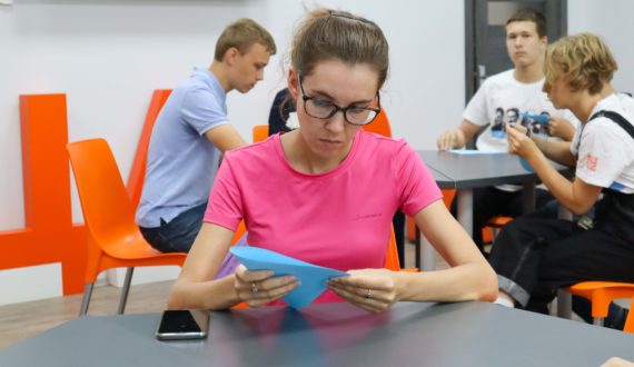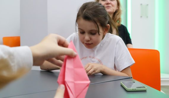 Начался вечер с урока «НЕтехнологии», в рамках которого состоялся мастер-класс по оригами. Гости центра познакомились с восточным искусством создания фигурок из бумаги, узнали об истории появления бумаги на древнем Востоке, а также о легенде, согласно которой исполнится любое желание, если сделать 1000 оригами фигурок журавликов.