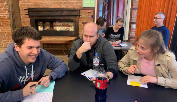 26 мая клуб интеллектуальных игр «Квантовые совы» сыграл в спортивное «Что? Где? Когда?». Место проведения изменилось – теперь клуб базируется в коворкинге «Ясная поляна» на площади Льва Толстого. Организатором игры выступил Информационный центр по атомной энергии (ИЦАЭ) Санкт-Петербурга.