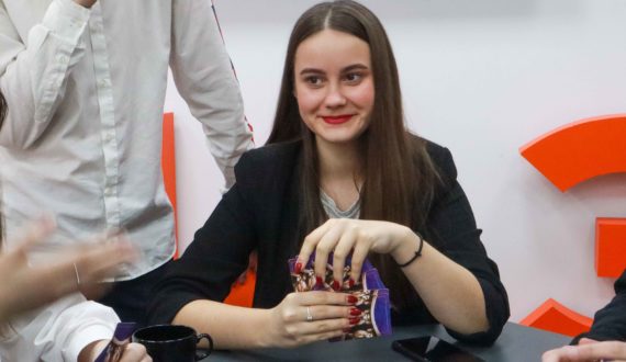 «Сегодня мы с командой друзей приняли участие в интеллектуальной игре «Адреналин». К сожалению, мы не заняли призовое место, но меня заинтересовали вопросы и ответы на них. Особенно, вопрос про синхротрон, который начали строить в 2021 году под Новосибирском. На котором голландские учёные изучили структуру жирового налёта на шоколаде. Мы с командой совещались и думали, что верный ответ мясо. Оказалось, что белая плёнка образуется на шоколаде, когда он плохо кристаллизуется или хранится в неправильных условиях. До игры нам удалось командными усилиями собрать пазл в виде атома. Я была сосредоточена при выполнении игровых задач и получила положительные эмоции от итогового результата», прокомментировала участница открытого четверга, Аделина Измайлова.