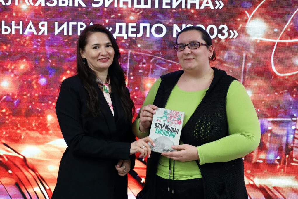 В начале вечера, на интеллектуальной игре «Адреналин: День российской науки», участники не только проверяли свои знания об открытиях соотечественников, но и соревновались в умении стратегически мыслить и рисковать. Атмосфера игры позволила гостям настроиться на продуктивный диалог и подготовиться к основной экспертной части программы — очередному выпуску устного журнала «Язык Эйнштейна».
