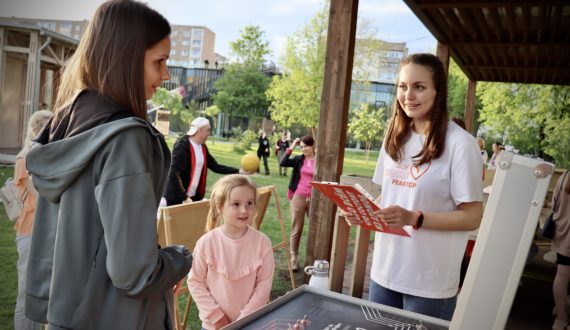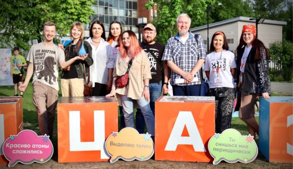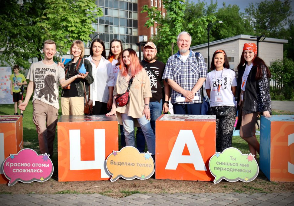 Сотрудники ИЦАЭ установили «Научную лужайку» под открытым небом с напольными и настольными интеллектуальными играми и интерактивными станциями. Самым маленьким гостям праздника понравилось разбирать дженгу, прыгать по клеточкам гигантской напольной игры и собирать большой атомный пазл. Ребята постарше и взрослые с удовольствием приняли участие в интеллектуальном квизе с «Детектором знаний», «Хронографом», викториной «Физика для чайников» и «Чепухатомом».