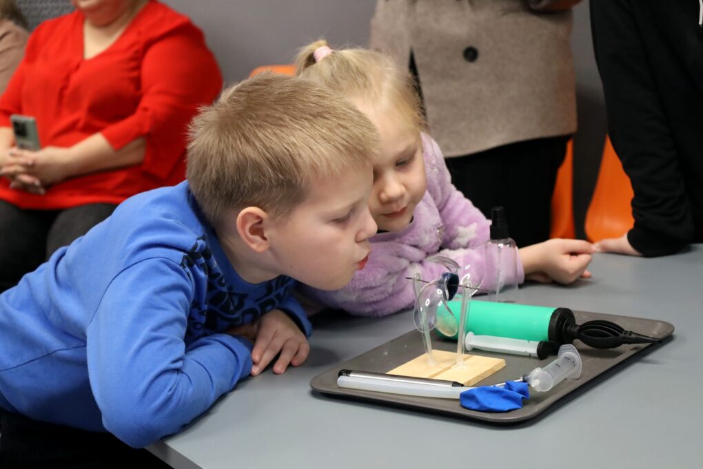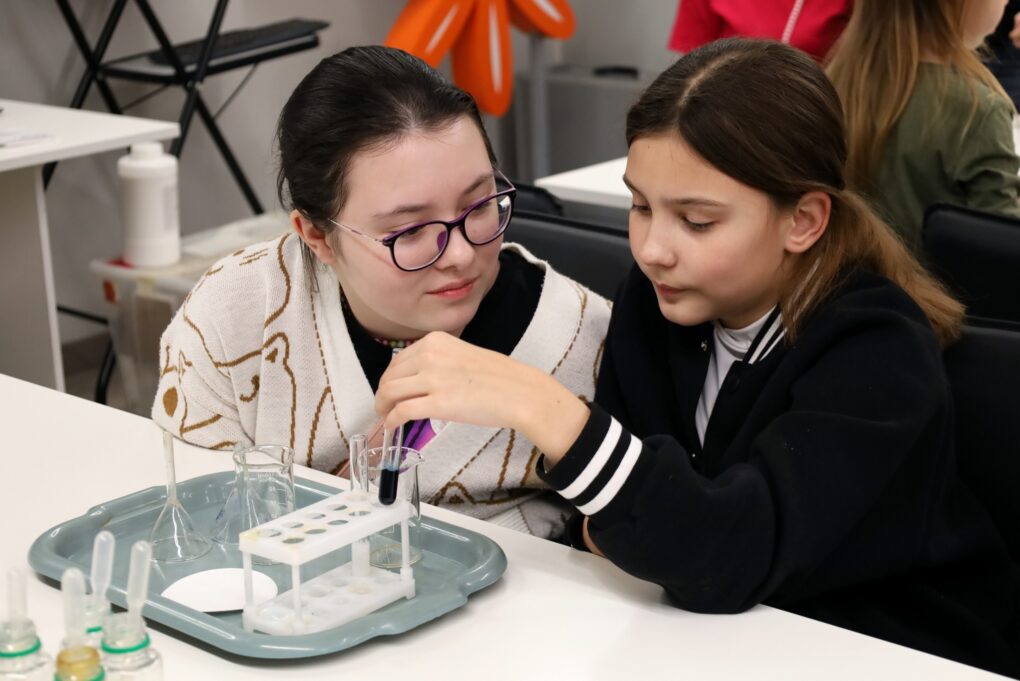 Продолжением мероприятия стали научные мастер-классы. Школьники смогли провести физические и химические эксперименты своими руками.  Ребята узнали, как раньше получали краски, во что может превращаться энергия, самостоятельно создали гуашь на основе пигмента и запустили двигатель внутреннего сгорания.