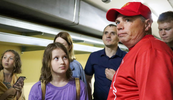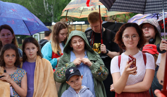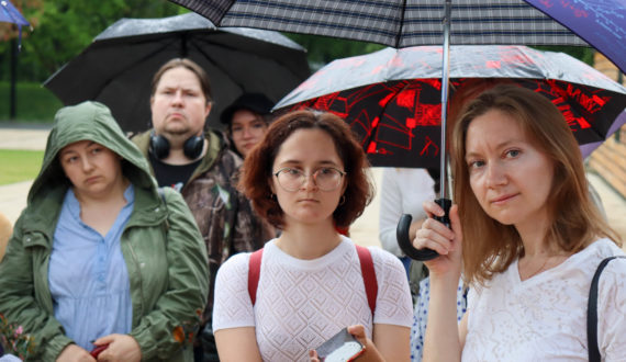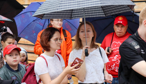 Лекция и экскурсия на Центральной площади Ижевска прошли атмосферно: под звуки дождя двое экспертов рассказывали про водоснабжение города и устройство музыкального фонтана.