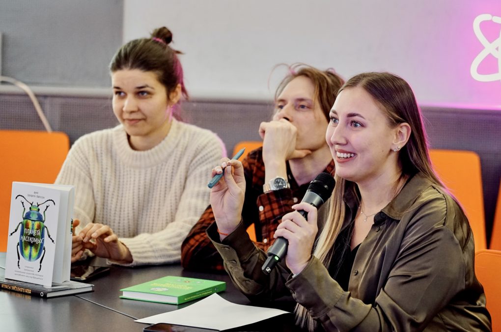 О том, какое впечатление произвела на неё книга Джейн Гудолл «В тени человека», рассказала Наталия Фельдман. «Джейн Гудолл стала первой в мире исследовательницей, изучавшей шимпанзе в естественной среде обитания, и это позволило ей открыть мир сложных социальных взаимодействий приматов и, по её собственному признанию, лучше понять, почему люди устроены так, а не иначе», — объяснила Наталия. Затем спикер рассказала о составленном ею толковом словаре «Пойми атомщика: лексика атомной отрасли».