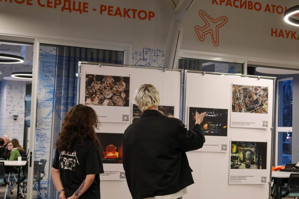В начале вечера гости ИЦАЭ смогли посетить фотовыставку «Красота атомных технологий», которая предлагает заглянуть в мир передовой науки и инновационных решений, созданных учеными атомной отрасли. Участники смогли насладиться индустриальной эстетикой и увидеть сквозь объектив фотокамеры, где создаются реакторы для атомных ледоколов, как строятся атомные электростанции, а также, что происходит за дверями научных лабораторий, куда обычно «посторонним вход строго воспрещён».
