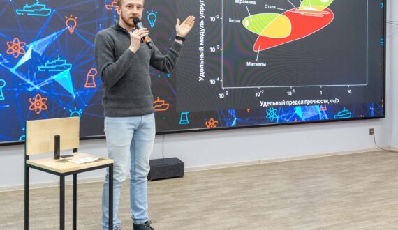 Разговор о материалах начался с выступления Александра Ерёмина, научного сотрудника лаборатории механики полимерных композиционных материалов Института физики прочности и материаловедения СО РАН, рассказавшего о композиционных материалах, их создании и применении.