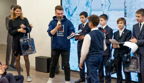 Призы победителям и участникам вручил руководитель проекта «Атомный урок», программный директор просветительской экспедиции «Ледокол знаний. Homo Science project – 2021» Павел Немков.