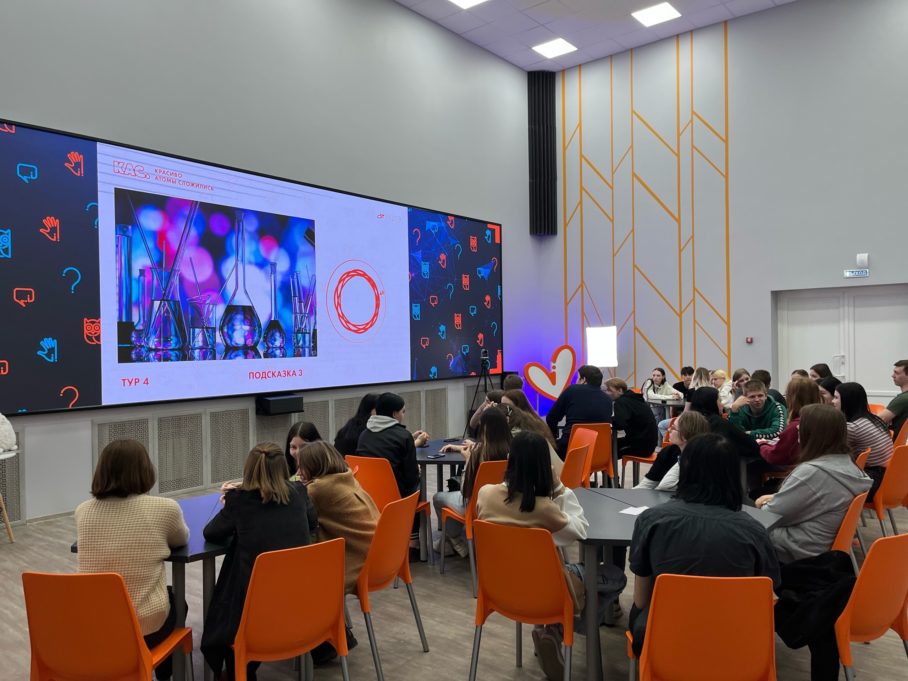 В 14:00 в интеллектуальной игре «Красиво атомы сложились» сразились семь команд Курского колледжа коммерции, технологии и сервиса.