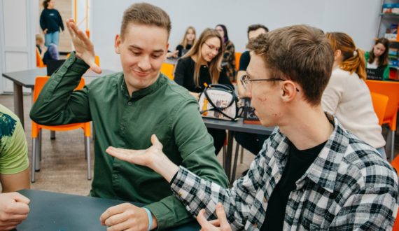 Вечер, посвящённый разным форматам обучения, начался с игротеки, где все желающие смогли сыграть в фирменные настольные игры ИЦАЭ, провести время за научно-популярной книгой или головоломками.