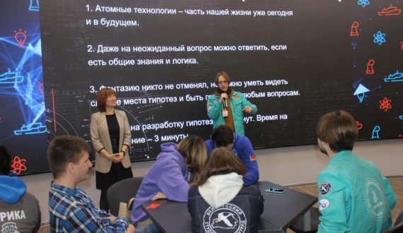 Затем Наталия Фельдман, кандидат филологических наук, координатор специальных проектов ИЦАЭ Владимира, провела коммуникативно-логическую игру «Атомные гипотезы». Студенты пытались ответить на вопросы о вымышленных мирах, в которых атомные ледоколы существуют с эпохи Средневековья, в небе целых два солнца, платёжным средством стала рыба, а динозавры не вымерли.