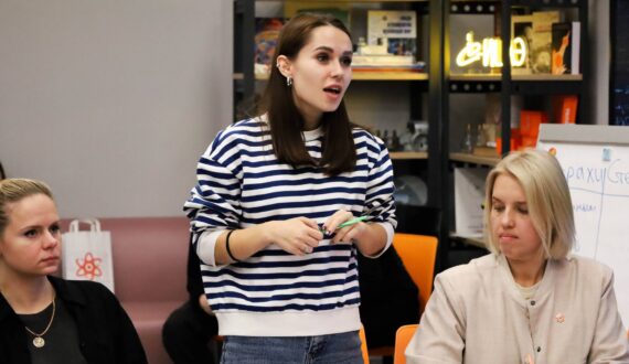 Как быстро расположить аудиторию к себе? Как объяснить младшекласснику, что такое радиация? Развить навыки публичных выступлений и познакомиться с деятельностью ИЦАЭ смогли участники тематического «ИЦАЭ OPEN: советы для советников». Мероприятие для педагогов и преподавателей организовал Информационный центр по атомной энергии (ИЦАЭ) Саратова 30 октября.