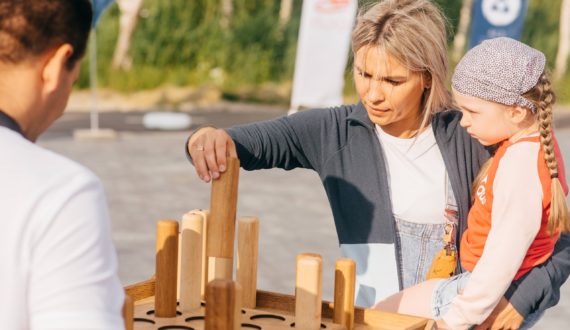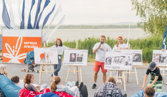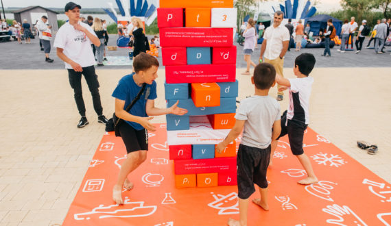 Посетители «Научной лужайки» проверяли свою эрудицию в интеллектуальных играх и викторинах, создавали таймлайны инженерных открытий, «синтезировали» нужные вещества с помощью «Молекулярного кольцеброса», складывали огромную физическую дженгу и аннигилировали пешки соперника в «Атомных шашках».