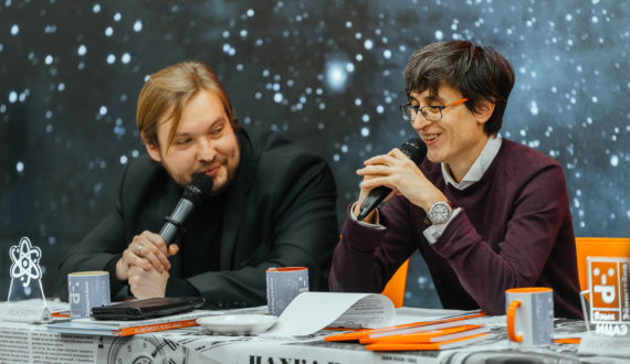 Первый осенний выпуск устного журнала «Язык Эйнштейна» состоялся в пятницу, 8 октября, в Информационном центре по атомной энергии (ИЦАЭ) Екатеринбурга. Учёные из Москвы, Челябинска и Екатеринбурга собрались за одним столом, чтобы обсудить самые свежие новости науки и их значение в стиле шоу «Прожекторперисхилтон».